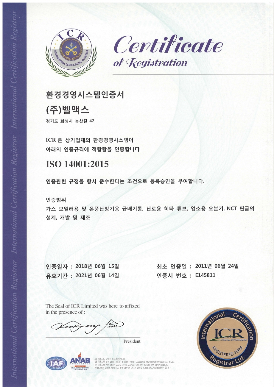 환경경영시스템인증서(ISO14001)